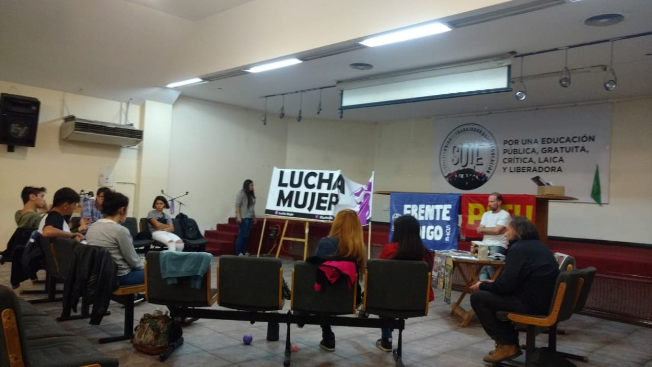La realizamos en el SUTE (Sindicato Unido de Trabajadores de la Educación). Estudiantes de nivel secundario, terciario y universitario, trabajadoras/es de la educación, obreros, coincidieron en la necesidad de incorporar los derechos de las mujeres y de las minorías sexuales dentro de las reivindicaciones por las que luchamos en nuestras organizaciones sindicales y estudiantiles.