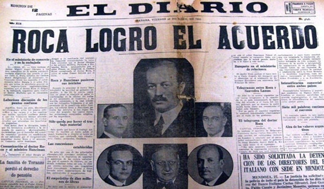 Ya entrado el siglo XX y en medio de la pavorosa crisis mundial de 1929 (que algunos comparan con la actual), se firma con Gran Bretaña el Pacto Roca-Runciman, pasándonos a la órbita de las colonias inglesas. Inglaterra se transformaba así en la “nación privilegiada”. Argentina le vendería carne casi exclusivamente a los ingleses, faenada en los frigoríficos extranjeros como Armour, Swift, y Anglo-Ciabasa, y cuyos productos británicos en su mayoría, dejaban de pagar impuestos a la importación. Se destruían la industria nacional y las economías regionales. Inglaterra decidía el destino de nuestras exportaciones.