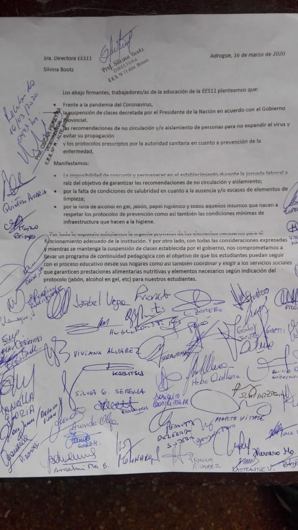 Hace años que en la gran mayoría de las escuelas no se garantiza la salubridad. Y ahora frente a la pandemia de coronavirus o la epidemia del dengue, sin disponer de los mínimos insumos para realizar los protocolos de prevención como jabón, alcohol en gel o elementos de limpieza básicos hacen de las escuelas grandes focos infecciosos. Por todo eso es que desde un primer momento los docentes y auxiliares del PSTU en el Frente Índigo exigimos la suspensión inmediata de las clases, el suministro de elementos necesarios de prevención y que los sindicatos llamen a asambleas para tomar en nuestras manos la lucha por nuestra salud, la de los estudiantes y sus familias.