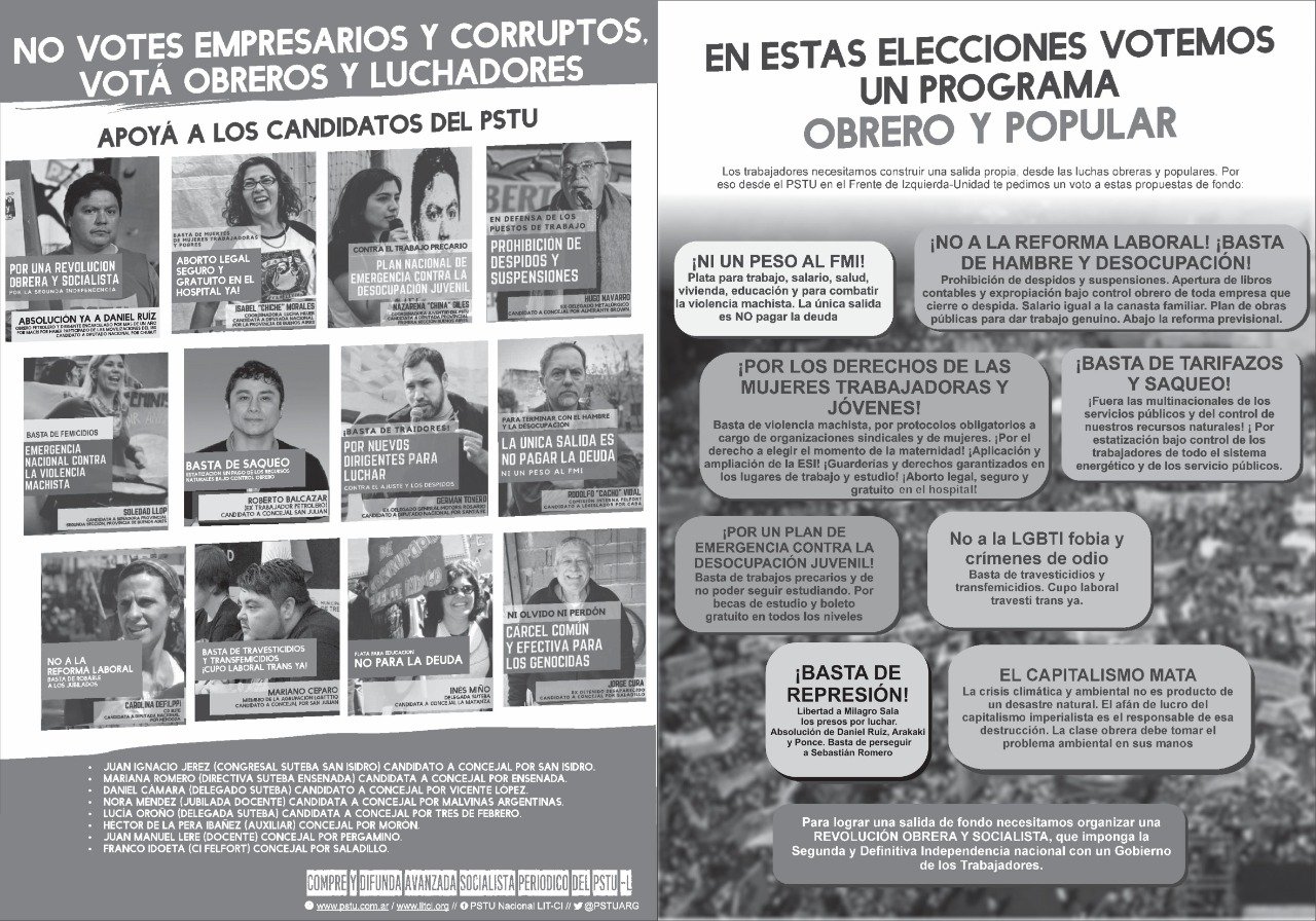 Un voto al FIT-U fortalece esta alternativa, y por eso queremos llamar a todos nuestros compañeros de trabajo, de la escuela, del barrio, de la universidad a apoyarnos en estas elecciones y a seguir enfrentando el ajuste en la calle.