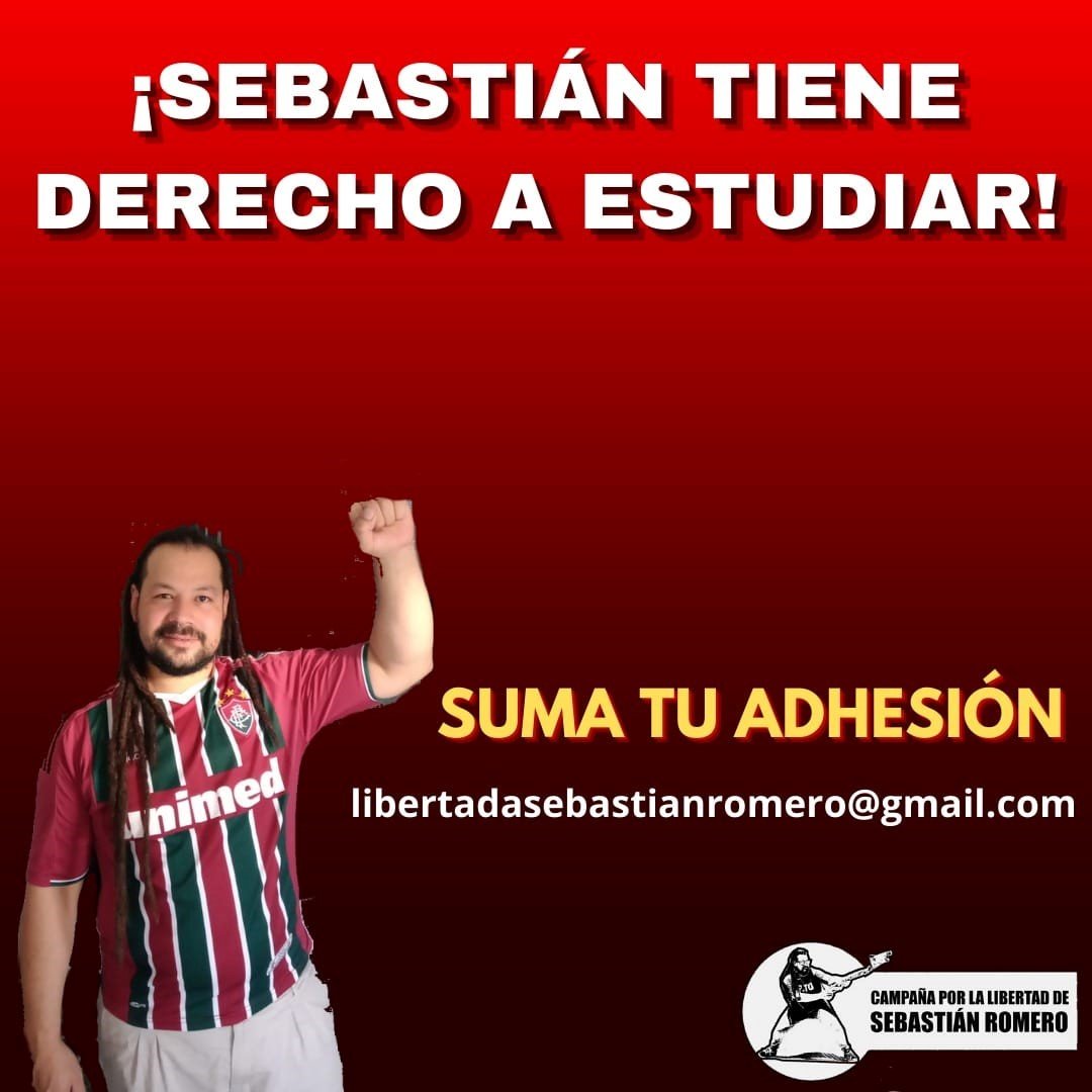 Para estudiar Sebastián necesita una “autorización” por parte de la misma Justicia que viene negando todos sus pedidos. Es por eso que como parte de la campaña por su libertad también exigimos que se le otorgue el derecho a estudiar, porque estudiar es un derecho elemental que debe poseer cualquier persona que quiera formarse y no un permiso otorgado por esta Justicia viciada de irregularidades.